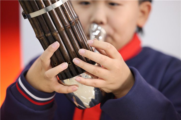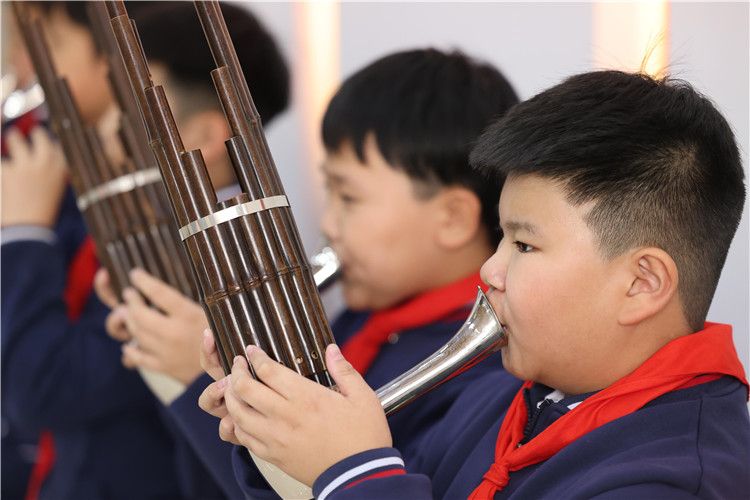 11月22日,河北省霸州市胜芳镇红光小学的学生在排练笙管乐。