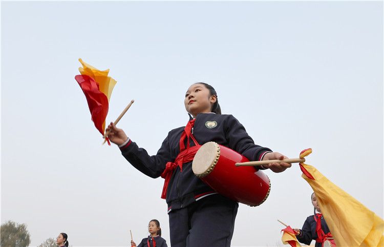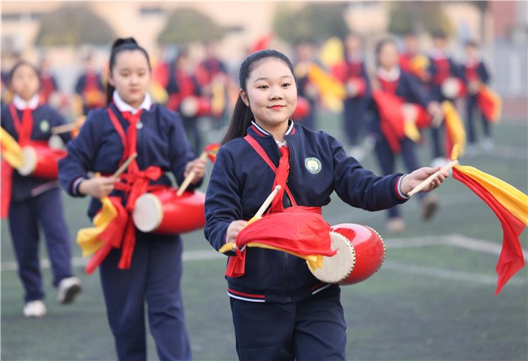 11月22日,河北省霸州市胜芳镇红光小学的学生在表演腰鼓。