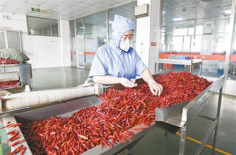 在位于永清的河北古松农副产品有限公司生产车间,工人正在生产加工辣椒、香叶等调味品。该公司是一家集研发、基地种植、采购、精深加工、物流及线上线下立体销售于一体的民营企业。近年来,我市依托毗邻京津的庞大市场需求,把都市休闲食品和预制化食品产业作为发展重点,全力推进食品工业向规模化、品牌化、高端化方向发展,积极抢占预制化食品产业新赛道。 记者 贾珺 摄