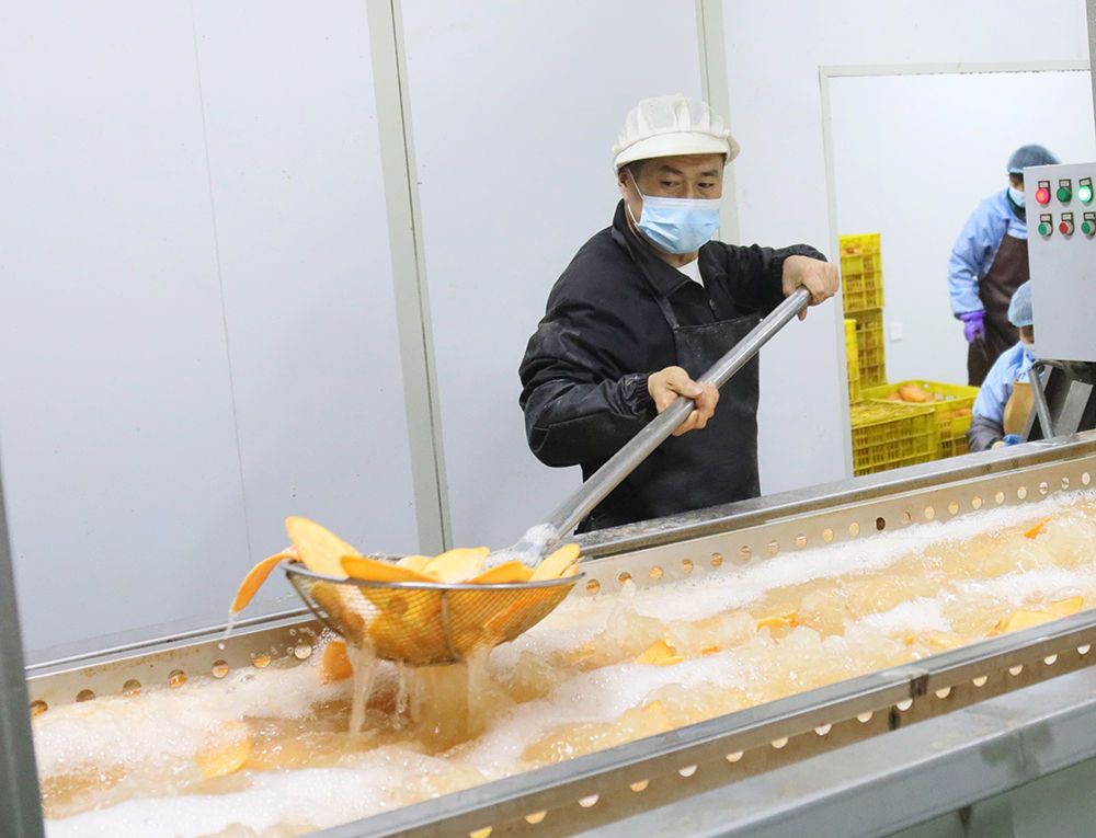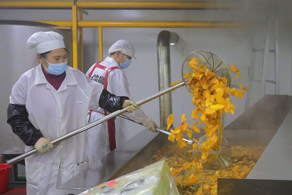近日,在河北省固安县马庄镇一家红薯加工企业,工人通过清洗、去皮、切片、浸泡、漂烫、油炸等工序,将红薯制成红薯片,现场一派繁忙景象。