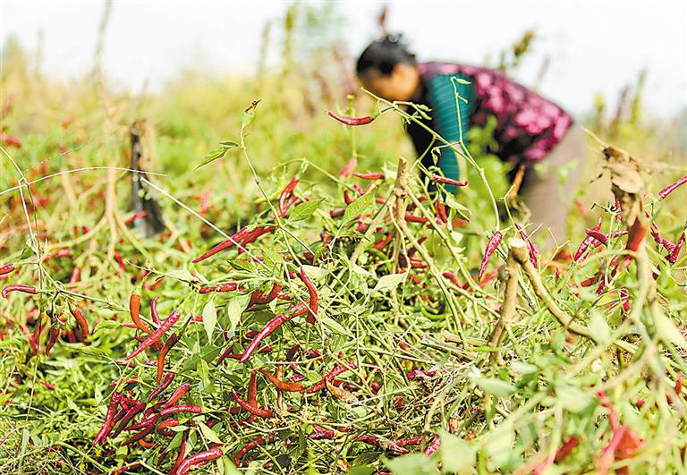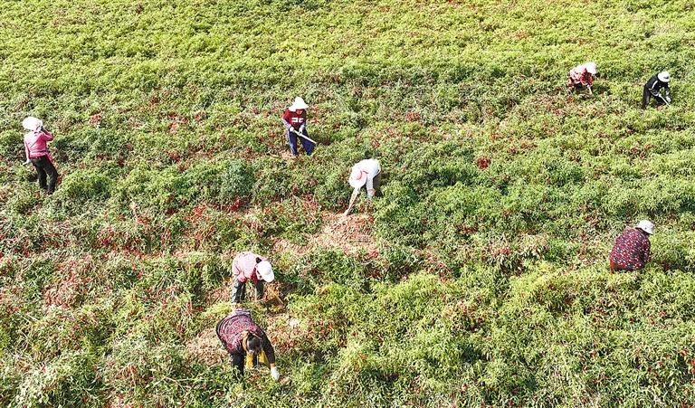 近日,在固安县牛驼镇北斜村的辣椒种植基地,鲜红的辣椒点缀在枝叶间,凉风吹过,带起阵阵辛香,农民穿梭其间,收获成熟的辣椒。“我种了300多亩的高辣艳红椒,收割后还需要晾晒成干辣椒,亩产干椒600公斤左右,亩产值大概12000元,主要通过订单销往四川、贵州、湖南等地。”北斜村种植大户张志超说。近年来,固安县创新发展订单农业模式,建立农业产业化联合体,大力发展蔬菜规模化、集约化、标准化种植,通过政策扶持、资金支持、指导服务等途径,不断提升农业产业层次,推动农村产业集聚化、品牌化,为乡村振兴注入新活力。