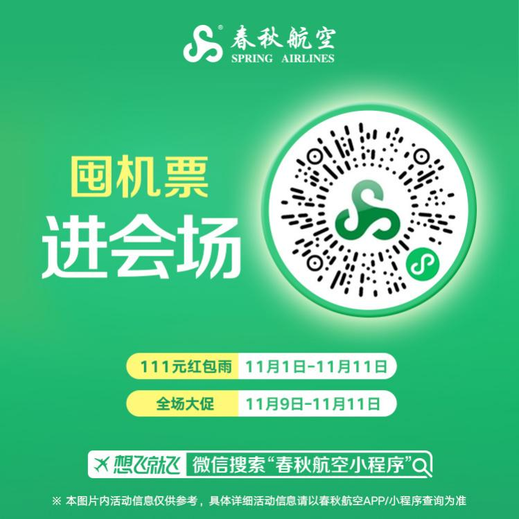 11/9-11日 | 全天 | 春秋航空特价机票,无门槛抢购 | |||