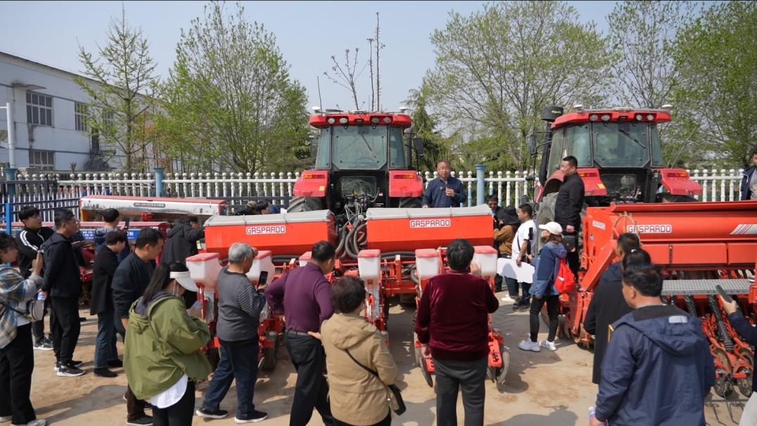 河北大地种业有限公司 总经理 武金燚详细讲解公司使用的先进播种设备,大大提升生产效率,提高播种速度,精确控制每粒种子的播种深度和间距,提高小麦出苗率,进而提升单位面积的产量。