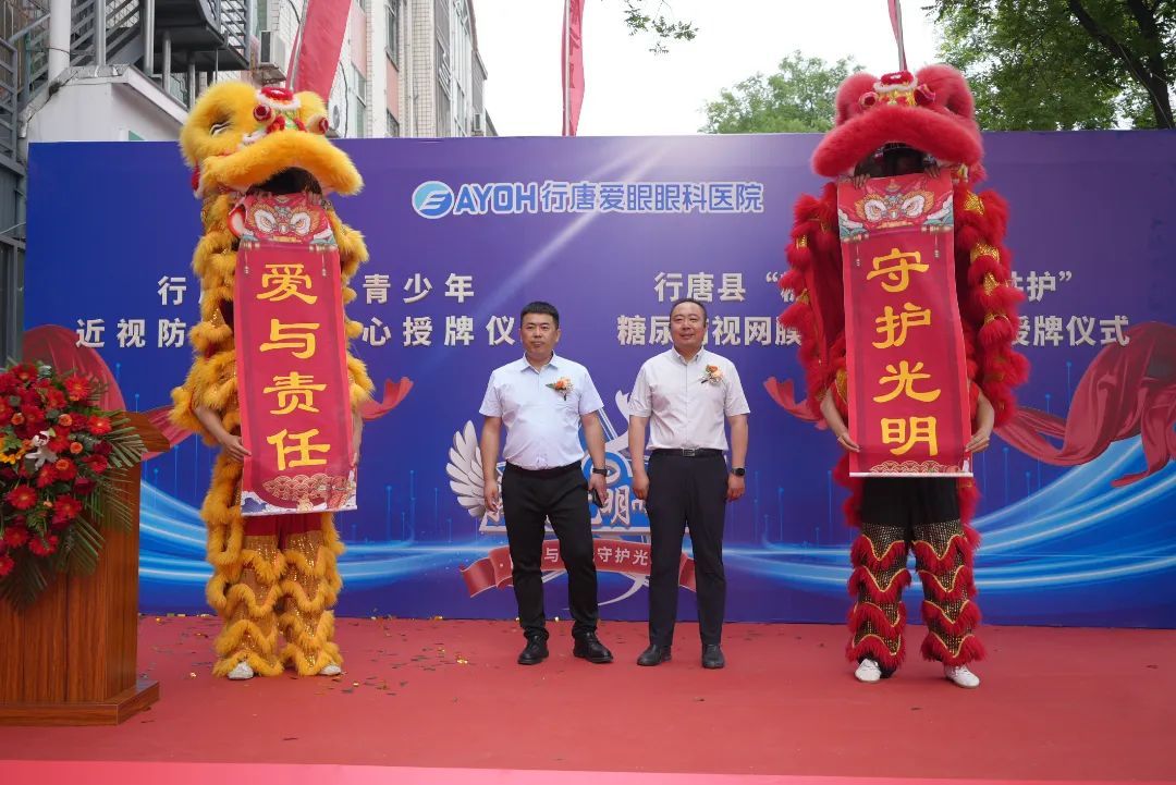 4月27日,行唐县儿童青少年近视防控干预中心授牌仪式和行唐县“糖视无忧·明眸共护”糖尿病视网膜病变关爱行动授牌仪式,在行唐爱眼眼科医院隆重举行。