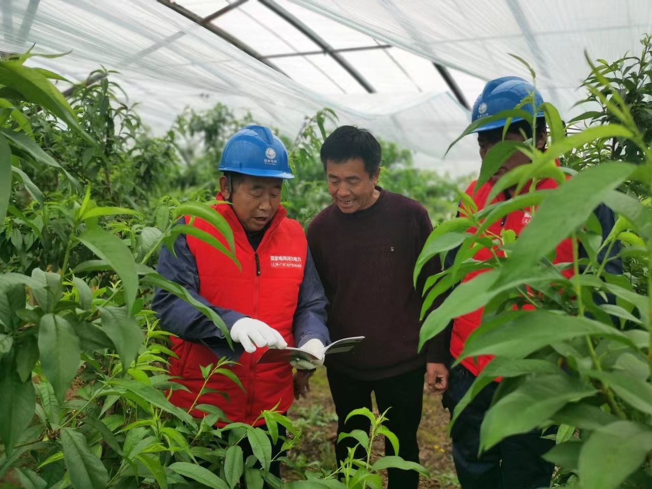 4月24日,国网广宗县供电公司员工在南寺郭“葡萄小镇”对果蔬大棚种植户宣传安全用电。(崔力升 摄)