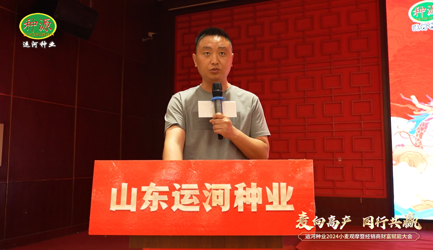 山东运河种业有限公司总经理董光军首先为大会致辞,董总表示,今天到场的各位嘉宾,都是运河种业携手多年的合作伙伴,运河种业之所为能发展至今天离不开广大合作伙伴的支持与厚爱!运河种业将不忘初心,砥砺奋斗,以更加优质的品种和更加贴心的服务,回馈广大经销商和种植户,携手并进,不断创造新的事业辉煌。