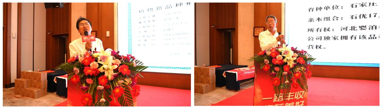 张文杰老师为大家讲解了婴泊700节水抗旱很突出、婴泊矮丰8抗冻高产、石麦26等优势品种,还介绍了各品种的审定情况,推广区域及推广优势,经销商也纷纷发言,为好品种代言。