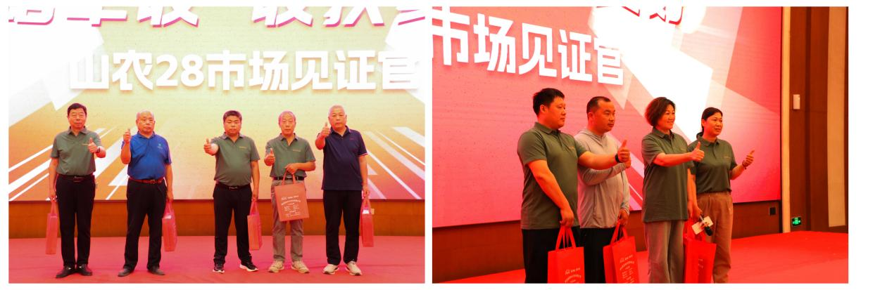 莅临现场的农资大商纷纷上台发言,来自沧县郭志霞、山东东明代永明、沧州肃宁范建高以及沧州吴桥赵凤娟就婴泊矮丰8在其区域市场的卓越表现分享,称赞婴泊矮丰8独特的抗冻优势深受大家喜爱追捧;来自馆陶张树武、邱县孟令杰、柏乡贾泽恩、冀州戴建忠以及石家庄无极的崔铁军,就山农28在各门店的镇店之宝的由来跟大家分享,站在市场的角度讲述山农28的优势,纷纷称赞婴泊种业好品种。