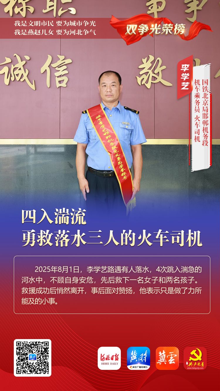 双争光荣榜丨李学艺:四入湍流勇救落水三人的火车司机