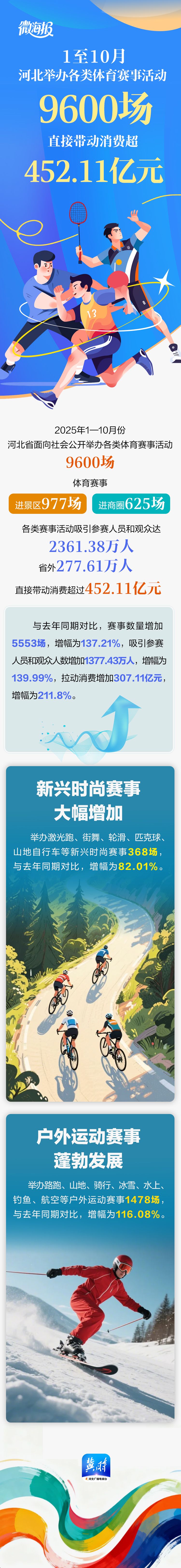 微海报丨1至10月河北举办各类体育赛事活动9600场,直接带动消费超452.11亿元