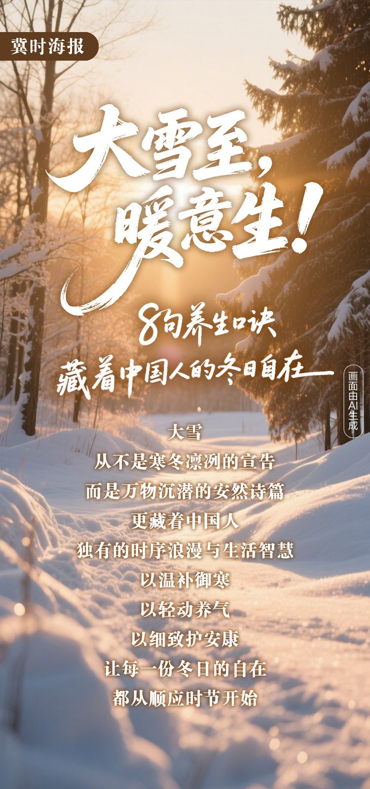 冀时海报丨大雪至,暖意生!8句养生口诀,藏着中国人的冬日自在