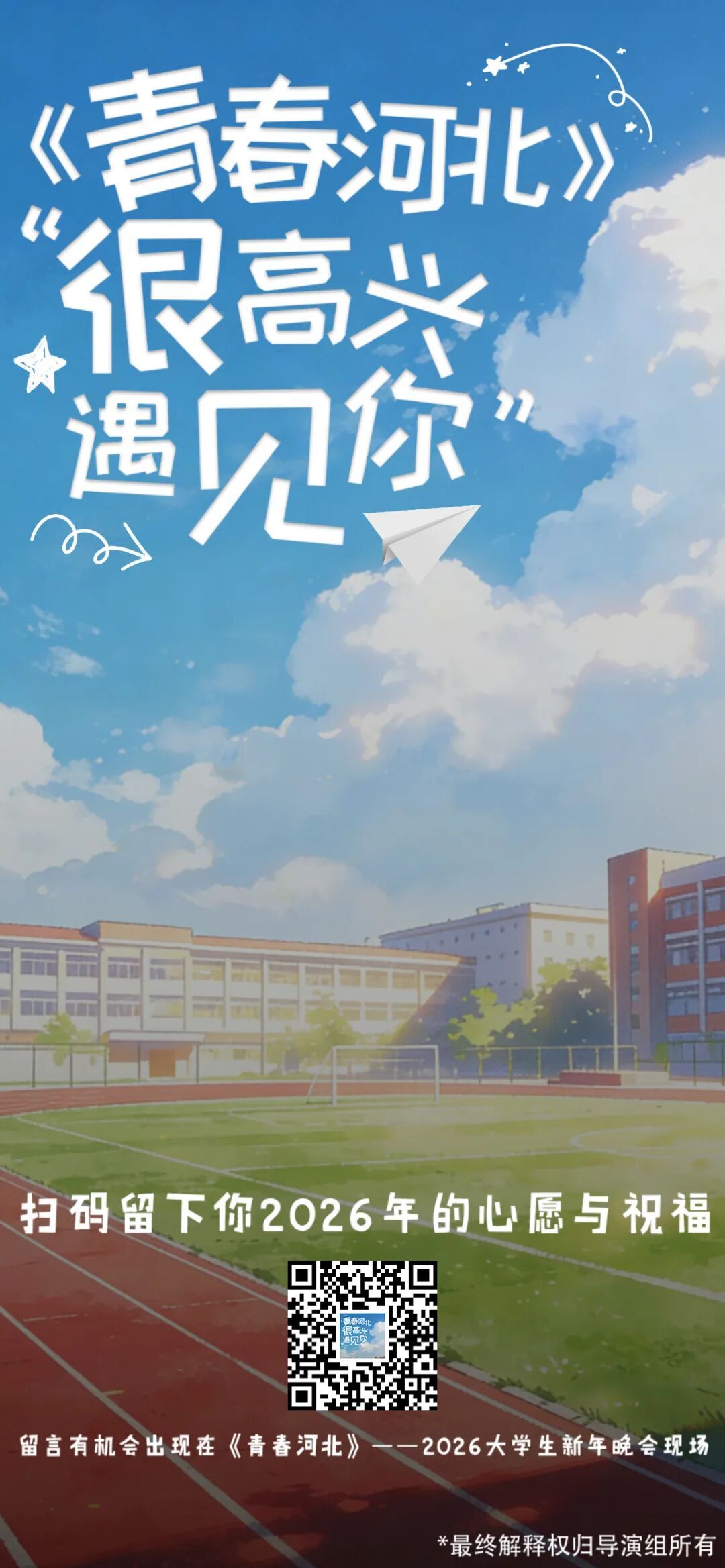 📱扫码留言,你的祝福有机会登上河北卫视《青春河北》——2026大学生新年晚会现场!