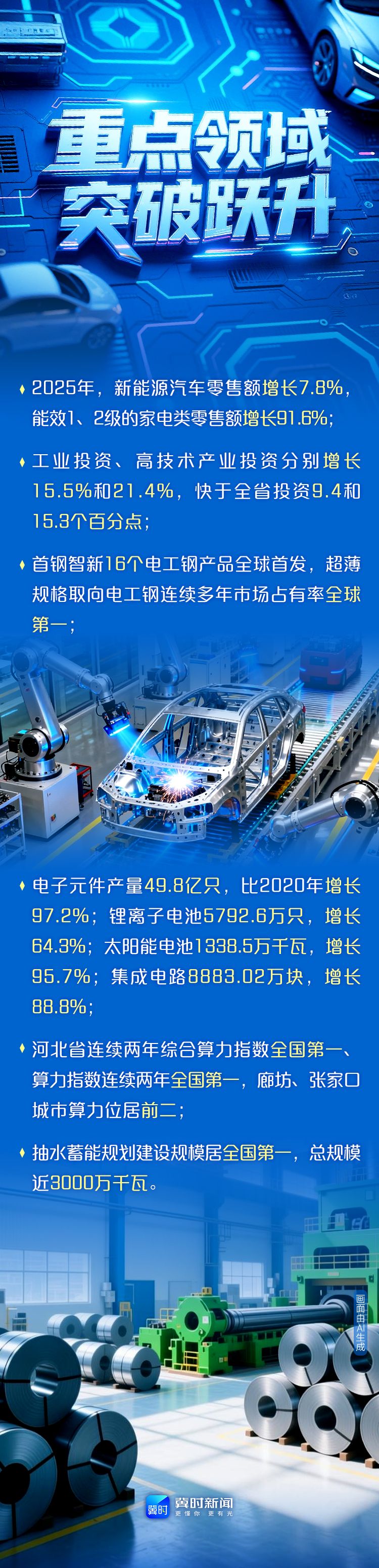锚定新质生产力,深耕新兴产业赛道,河北以创新为翼、以实干为基,在“十四五”期间持续发力、久久为功,推动产业能级实现跨越式跃升,用一组组硬核数据,生动书写转型突围、高质量发展的崭新篇章。