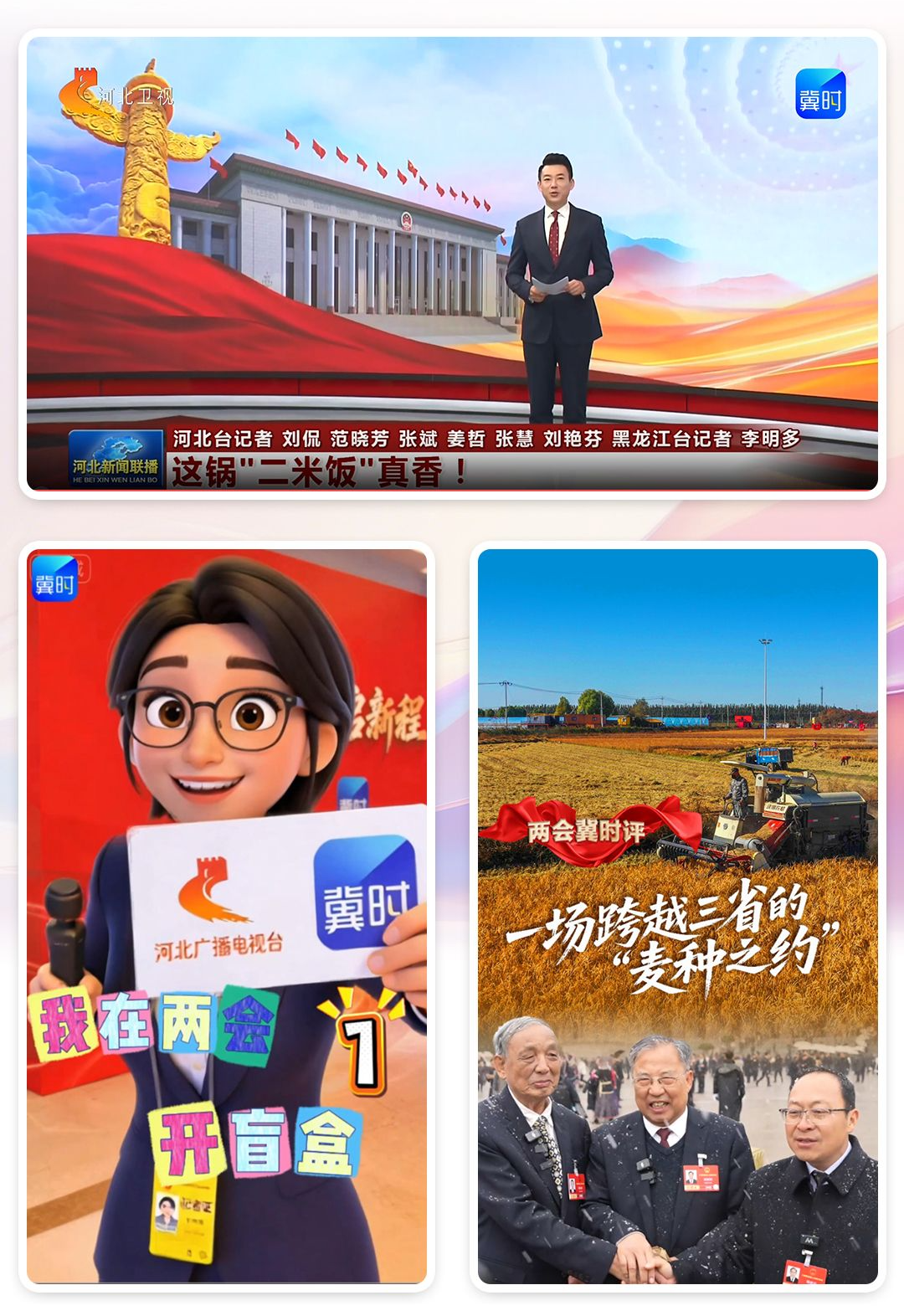 《两会冀时评・奋进“十五五”》4名冀时主播通过“@所有河北人”的亲切召唤和弹幕互动,打造人格化IP。三组新媒体IP集束呈现,我台两会内容传播更具辨识度和记忆点。