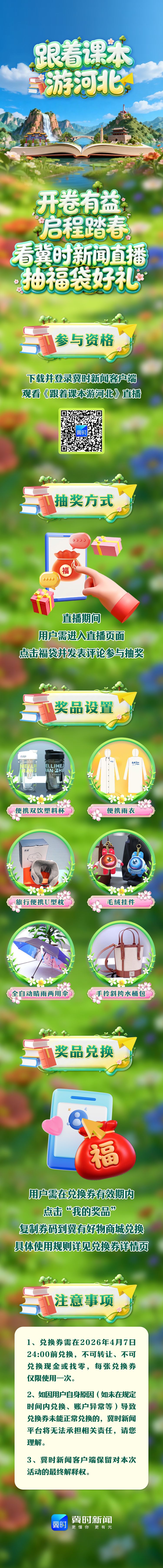 开卷有益,启程踏春,今天12:00看冀时新闻直播抽福袋好礼!