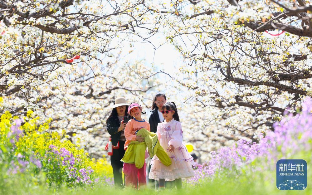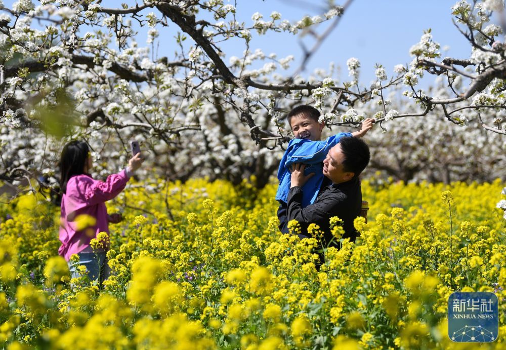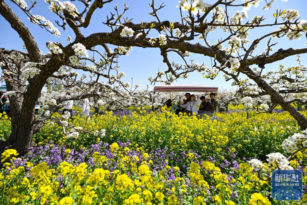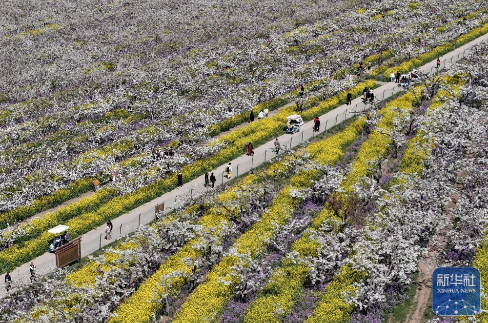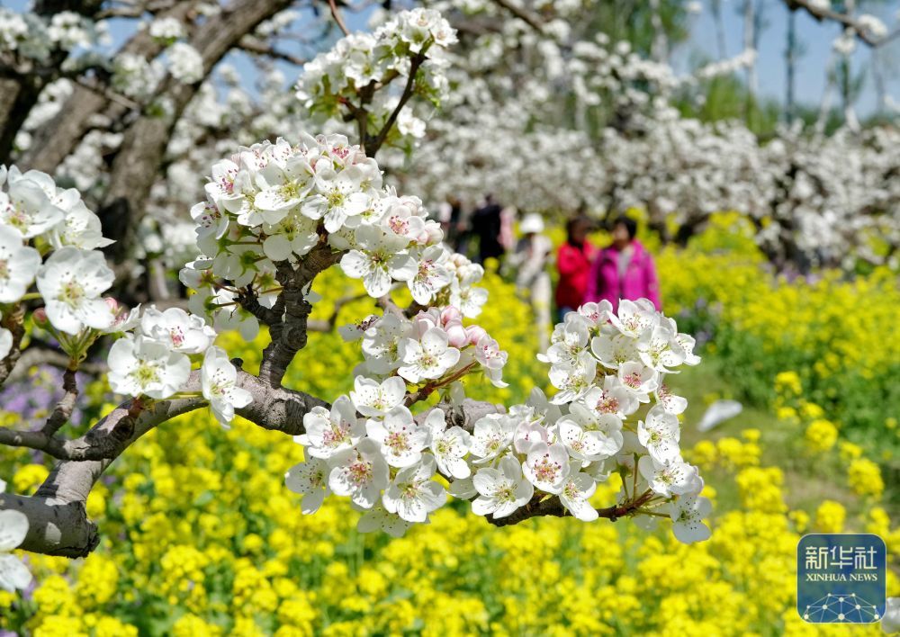 近日,河北省晋州市17万亩梨树迎来盛花期,梨花与田间连片盛开的油菜花相映生辉,吸引大量游客前来赏花踏青,休闲度假。