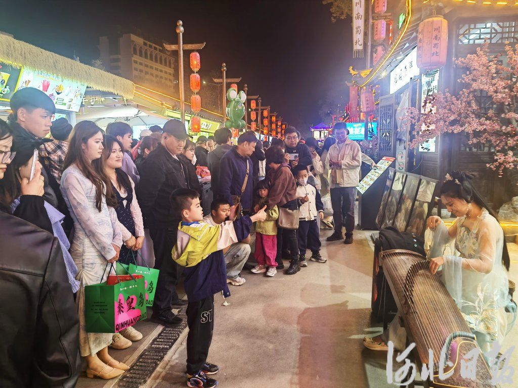 5月4日,秦皇小巷内的古风表演吸引众多游客驻足观赏。河北日报记者 孙也达摄