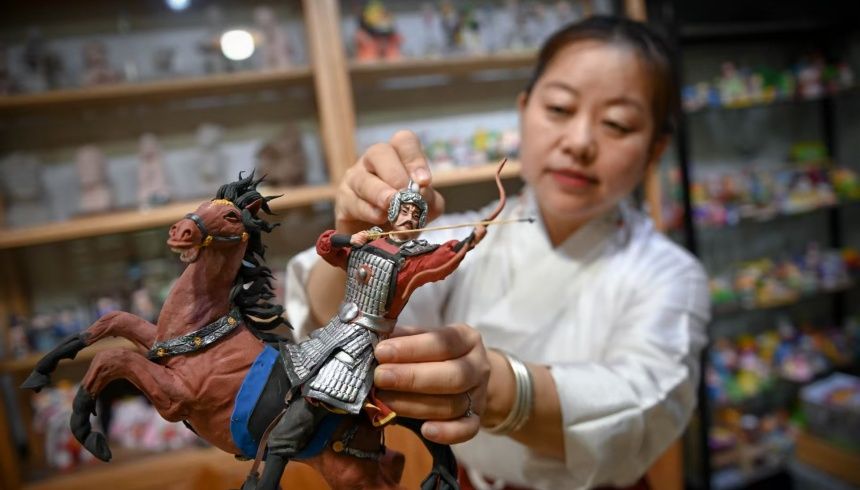 邯郸市级非物质文化遗产项目面塑代表性传承人李春芳在做成语文化文创作品。周绍宗摄