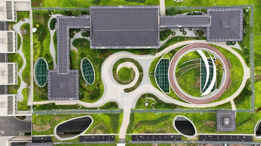 雄安的“绿”,不止于生态湿地,更融入城市的日常设施。在剧村变电站,传统印象中冰冷的电力设施被彻底重构,其屋顶覆土绿化,变身市民休憩的开放式公园,与周边城市景观和生态公园无缝衔接,延伸着城市绿色画卷。
