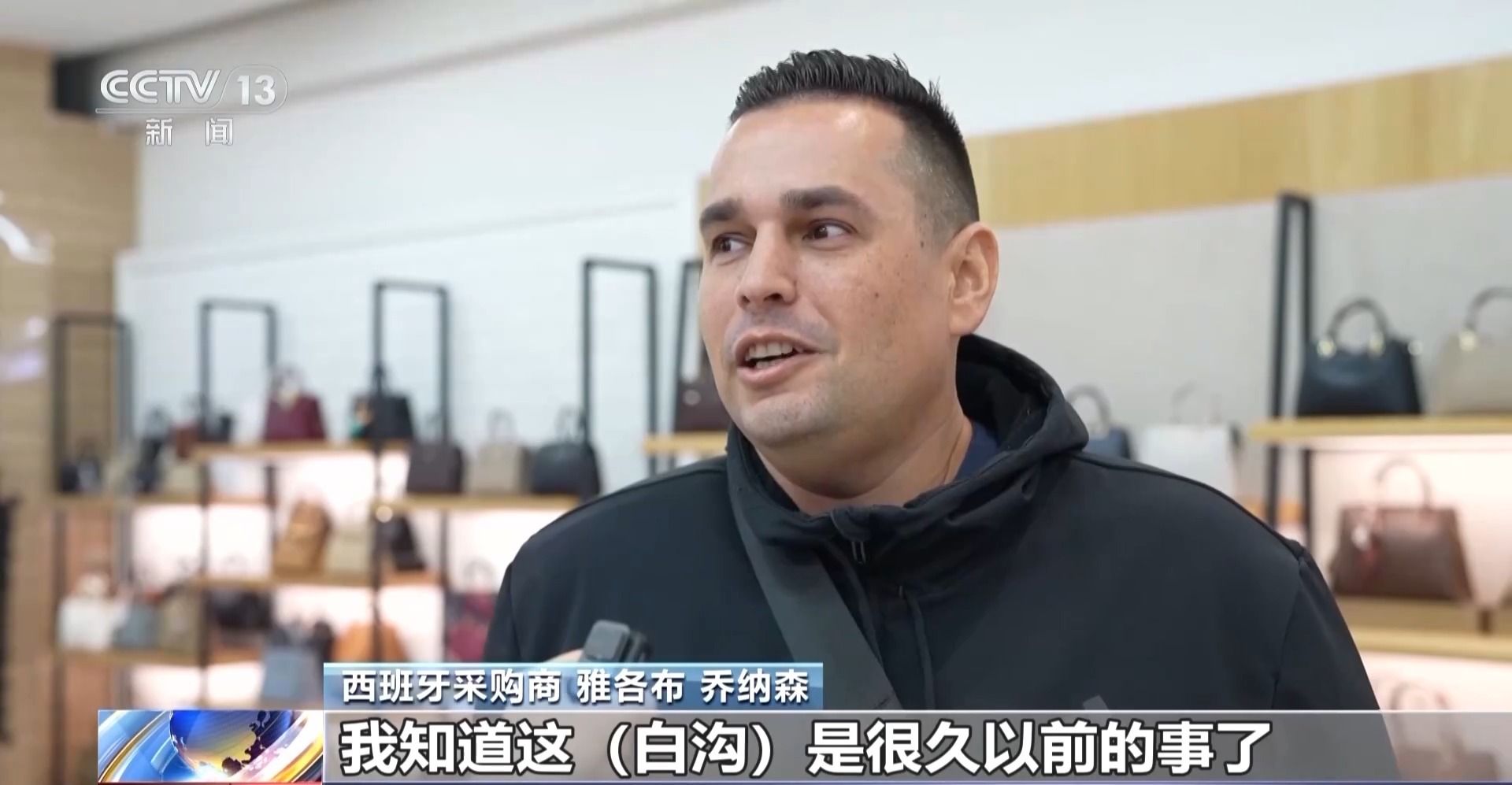 西班牙采购商 雅各布 乔纳森:我知道这(白沟)是很久以前的事了,大概是三四年前的事了,背包这类物品的产量很大,你知道,现在它们更专业、更有设计感,我认为它们更时尚。