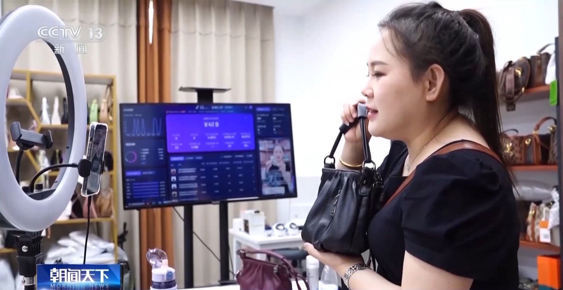 河北白沟某箱包企业负责人 黄彬彬:我们通过《虢国夫人游春图》,提取它18个颜色,这种是一个国潮的元素,我们这个包的里里外外,定制定染的颜色,还有这些织带,全部都是自己的设计,然后我们在跨境还有海外平台上特别受国外客户的欢迎。