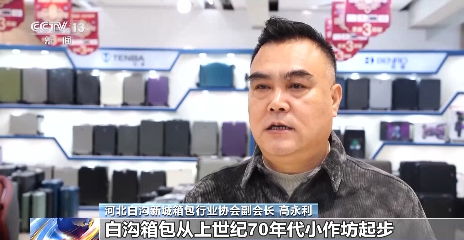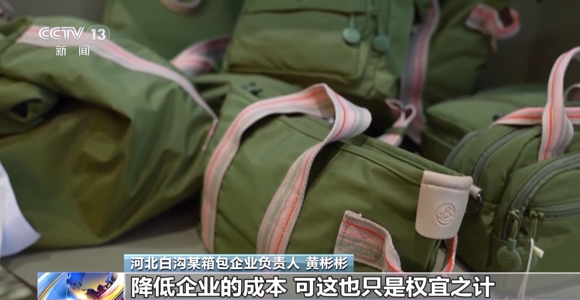 河北白沟新城箱包行业协会副会长 高永利:白沟箱包从上世纪70年代小作坊起步,跟着改革开放成长起来。五十多年来,我们形成了从原材料供应到设计、制造、销售的完整体系,联动周边13个省,带动了300多万人就业。但这两年大家都感觉吃力,规模上去了,利润反而薄了。