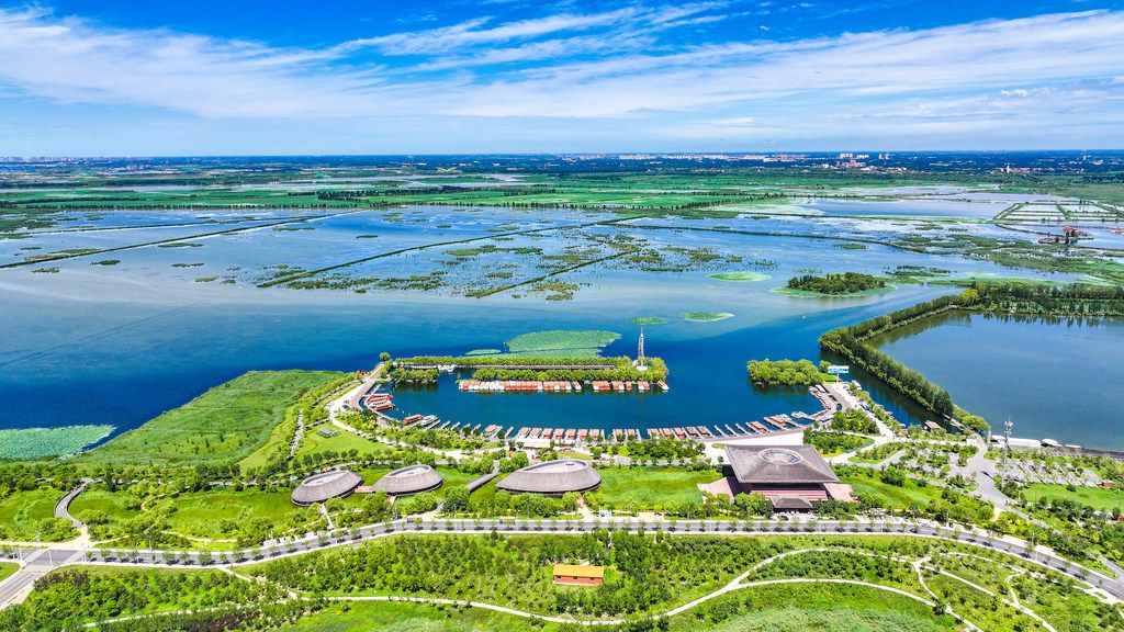 “十四五”时期,雄安新区坚持先植绿后建城,累计造林48.3万亩,绿化面积达74.3万亩,森林覆盖率提升至35.1%。坚持补水、治污、防洪“三位一体”统筹规划、协调推进,白洋淀水质连续4年稳定在Ⅲ类标准。以水润城打造公园城市,累计建成3.9万亩城市公园,悦容公园、金湖公园、燕南堤等一批美景火爆出圈,呈现出“船在水中游、水在城中流、城在绿中座、人在画中行”的华北水乡美丽景象。