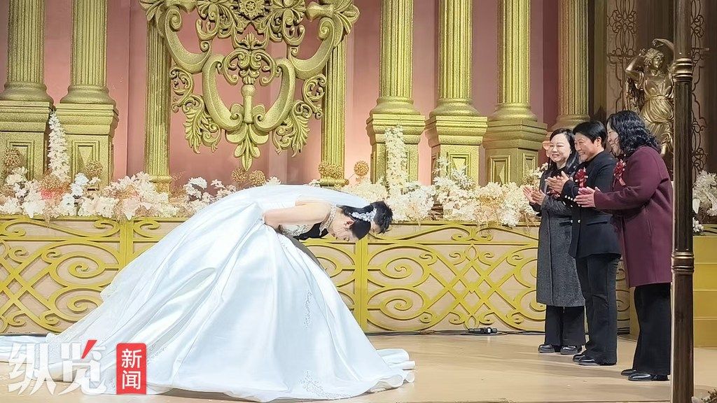 11日早上,天刚蒙蒙亮,定州市民政局和定州市儿童福利院的工作人员就赶到了举办婚礼的酒店,帮着新娘高宇装扮婚房。得知高宇和陈亚冲的情况,酒店特地免费提供了房间作为新娘的出阁婚房。福利院的“女儿”出嫁,作为“娘家人”,院长杨硕和家人为高宇包了饺子,党支部书记张伟卓端着碗,轻轻吹去热气,把饺子一个一个喂到高宇嘴里。“上轿”前,定州市政协副主席李娟和定州市民政局局长胡翠莲帮高宇蒙上了红色的盖头,微笑着看她坐上了婚车。大家就像送自己亲生女儿出嫁一样,认真对待着每一个婚礼细节。