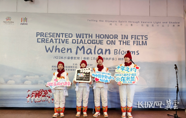时间回到2月8日。米兰大运河畔,国际体育电影电视联合会总部内,清澈的童声再次唱响奥林匹克会歌。唱歌的正是来自阜平马兰花儿童声合唱团的孩子们。4年前,这群大山里的孩子站在北京冬奥会开幕式的舞台上,用希腊语唱响《奥林匹克颂》,惊艳全球;4年后,他们随儿童电影《马兰花开的声音》剧组主创亮相米兰,将自己的故事讲给世界听。