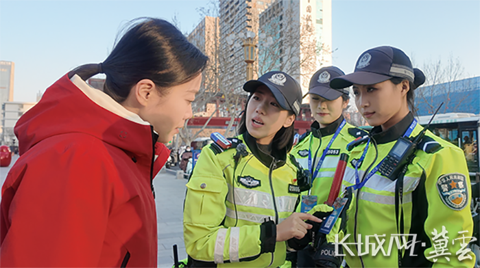 邯郸道开街于2025年1月,是邯郸市重点打造的文旅地标。游客多了,问路的人也多了。女交警们便多了一重身份——“导游”。