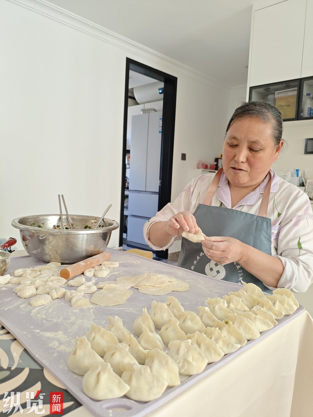 2月16日,母亲在新家准备年夜饭饺子。纵览新闻 任凯摄