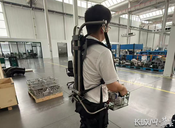 工作人员正在对无源外骨骼仿生机器人进行测试。