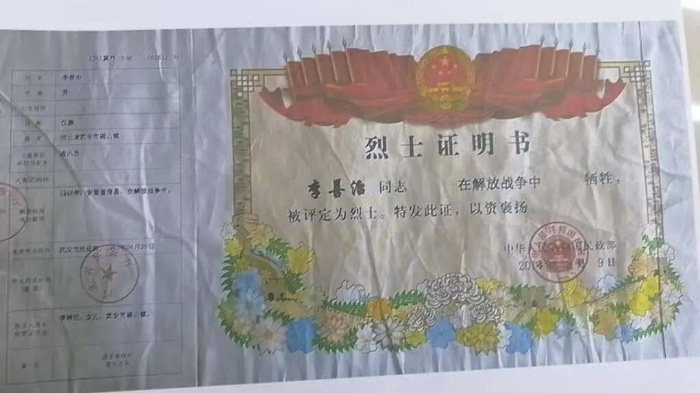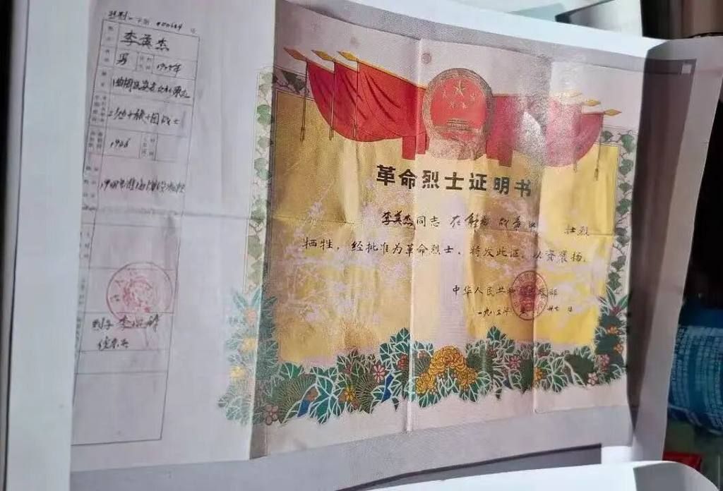 李英杰烈士证明书