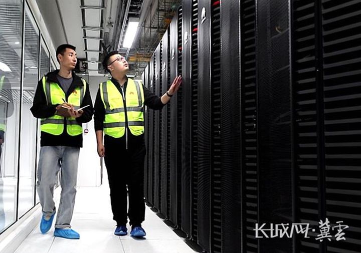 河北人工智能计算中心工作人员检查机房设备。长城网·冀云客户端记者 武海笑 摄