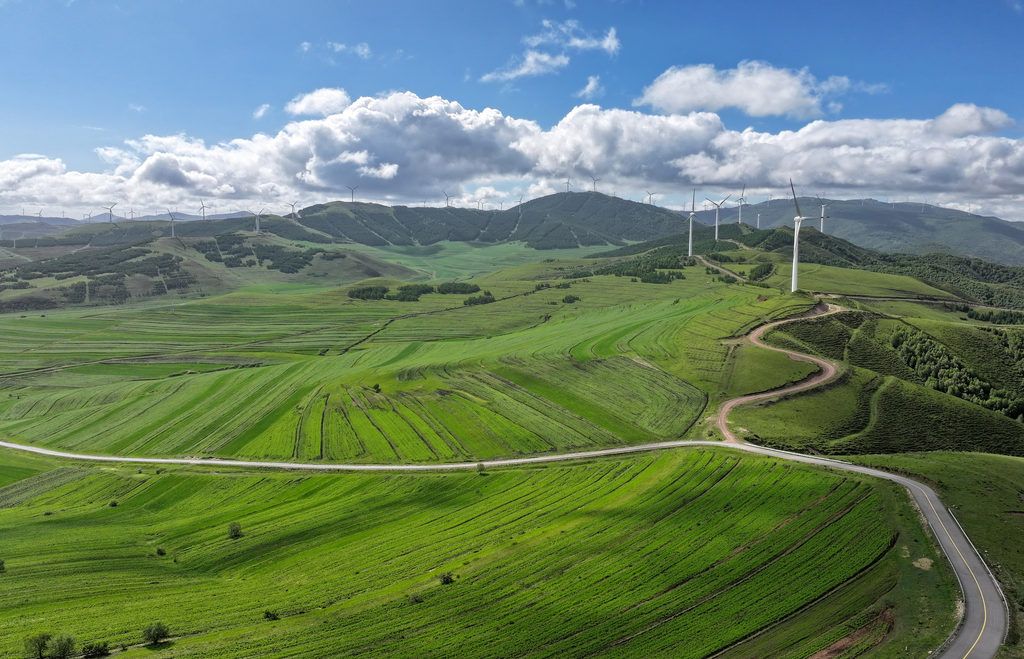 河北省张家口坝上地区沽源县草原天路沿线景色(无人机照片)。 新华社记者 杨世尧摄