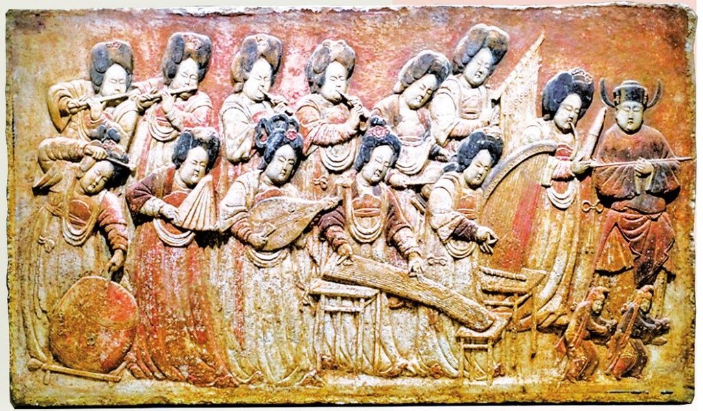 曲阳石雕——王处直墓出土的彩绘浮雕散乐图。 河北日报资料图