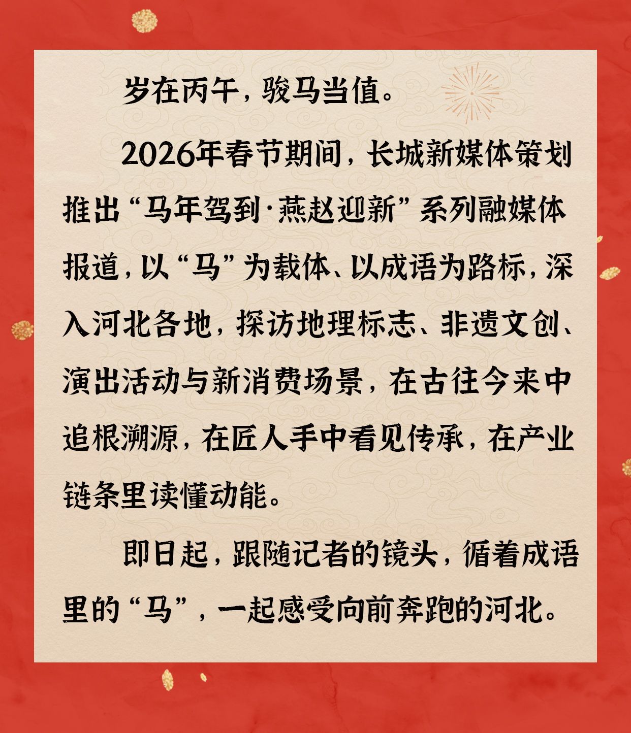 马年驾到,一抹红把燕赵迎新的喜气照进城乡。