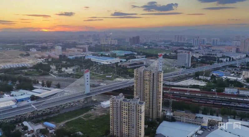 保定乐凯大街高架桥横跨铁路线,与城市建筑相映成景(央广网发 保定市交通局供图)