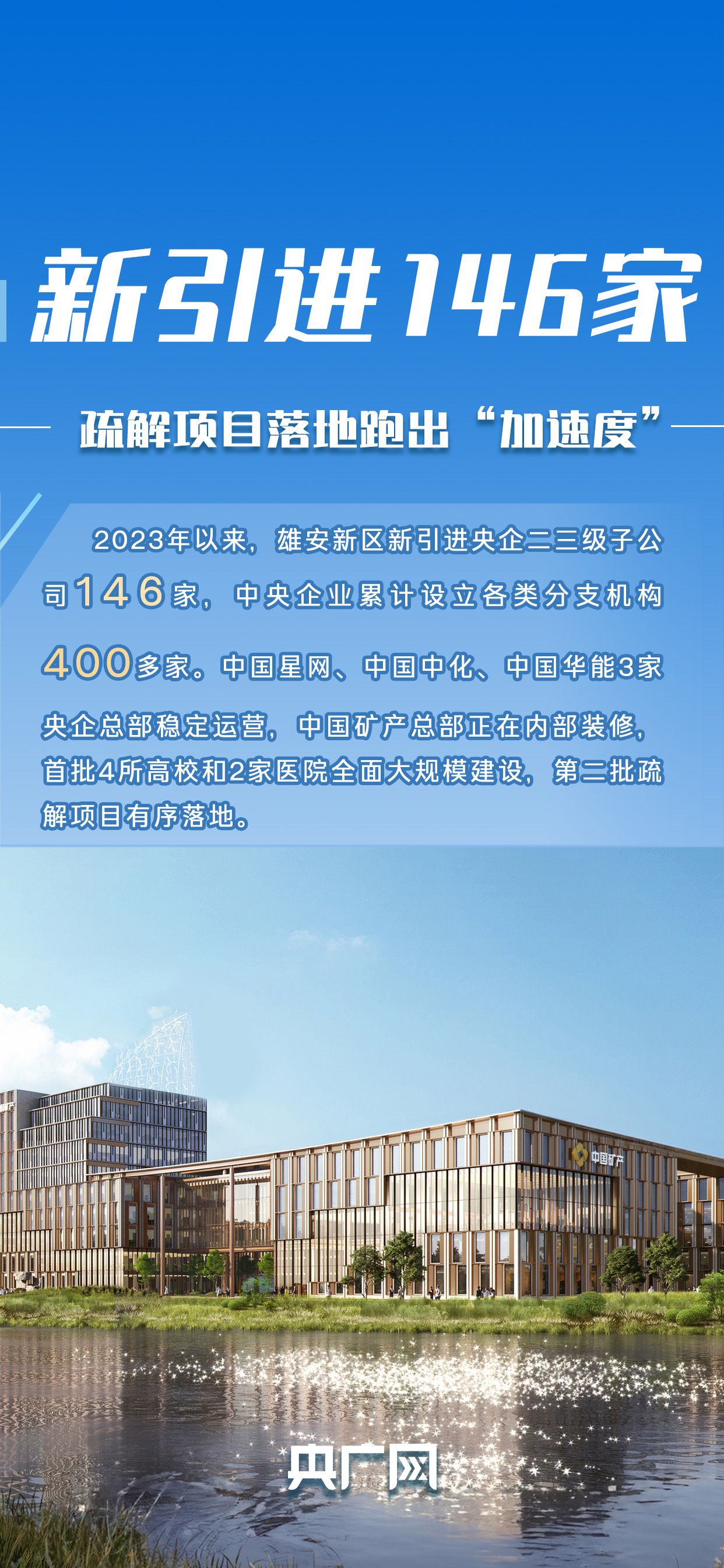九年来,雄安新区疏解工作蹄疾步稳,北京非首都功能疏解集中承载地基本成型。中国星网、中国中化、中国华能3家央企总部稳定运营,大唐、农发、华电、诚通等第二批疏解项目有序开工,高校、医院等优质公共服务资源加速集聚,400余家央企分支机构、数千家北京来源企业相继落地,疏解示范效应持续凸显。而中国矿产的快速落地、高效布局,正是雄安疏解吸引力、承载力、服务力的有力印证,更诠释了央企响应国家号召、服务国家战略的责任担当。