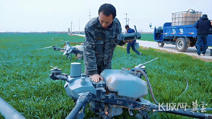 无人机飞手正在检查农用无人机。长城网·冀云客户端记者 张超 摄