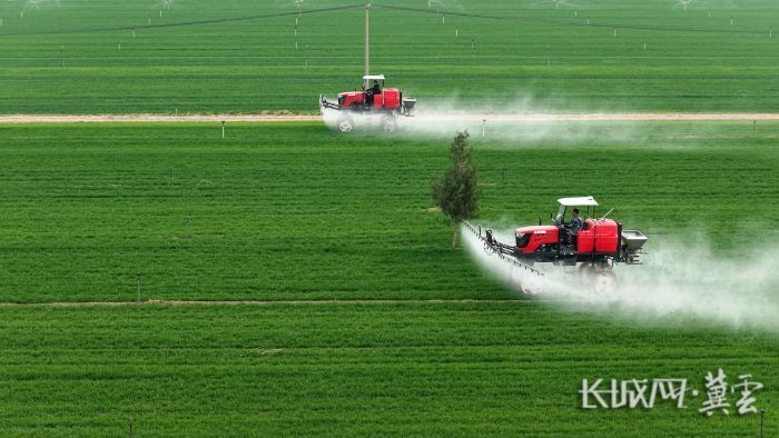 石家庄市藁城区五丰农机种植服务专业合作社小麦春管工作有序进行。长城网·冀云客户端记者 张超 摄