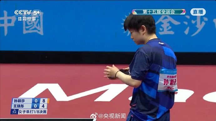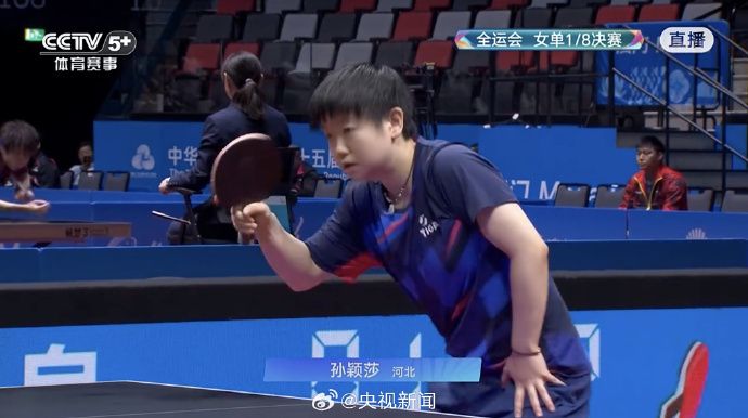 第十五届全运会乒乓球女单1/8决赛,孙颖莎战胜对手,晋级8强。加油!