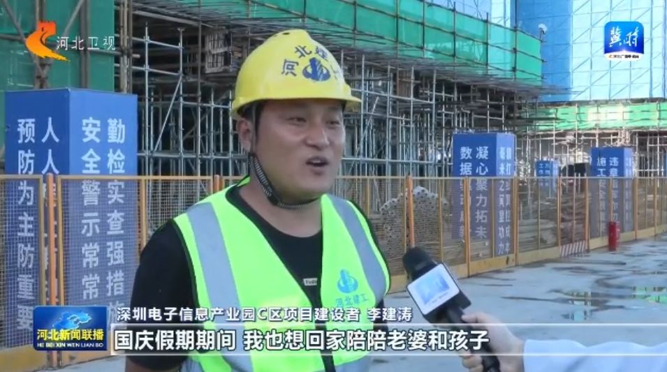 俯瞰邢台高新区深圳电子信息产业园项目现场,一派繁忙景象。位于四层顶楼的钢筋工师傅们各司其职,默契配合,进行着梁板钢筋绑扎工作。国庆节对他们来说不只是节日,更是项目推进的重要节点。
