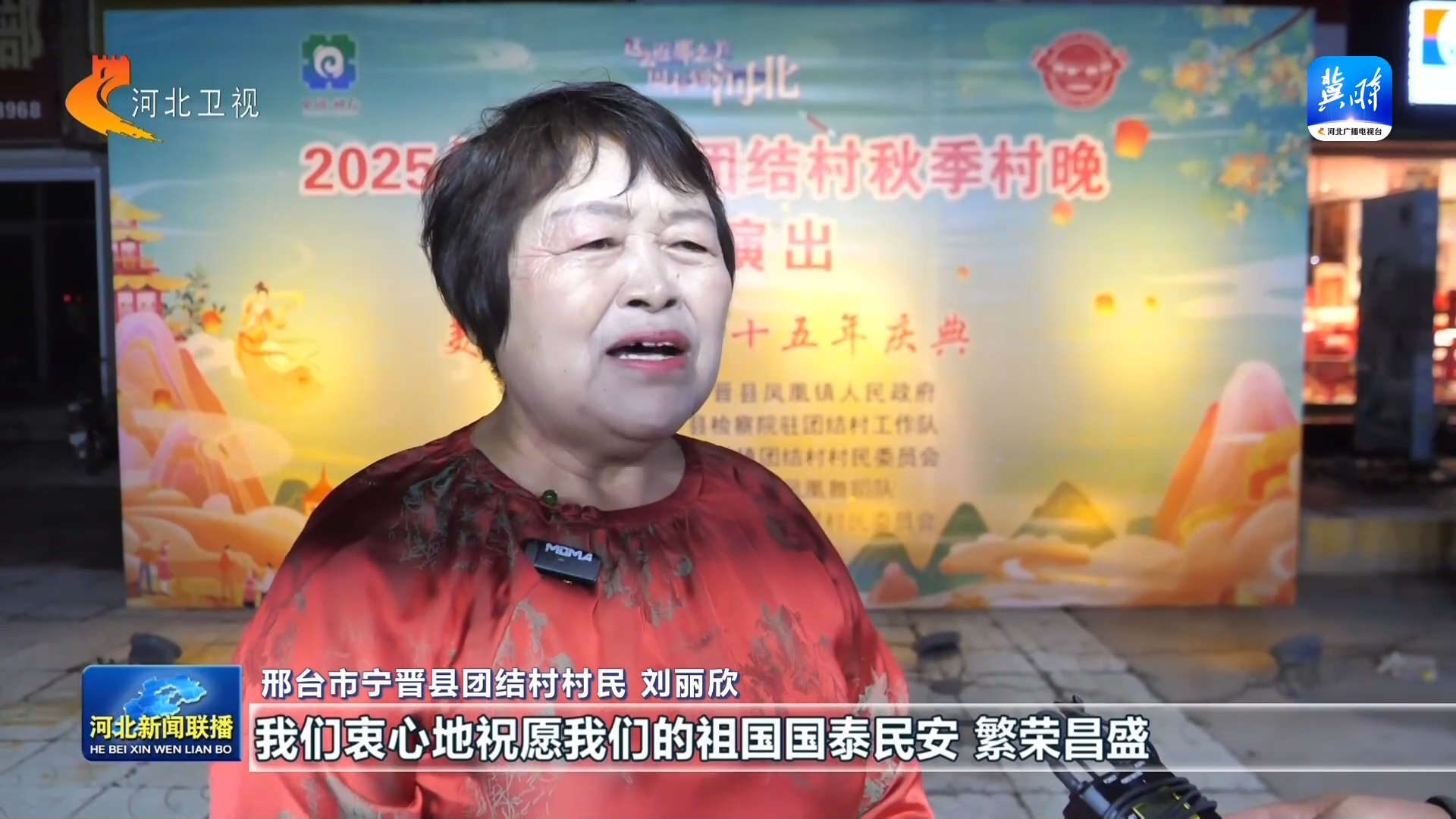 邢台宁晋县团结村举行"迎中秋 庆团圆" 主题晚会,村民们以自编自演的《老百姓的好心情》《五星红旗》等歌舞表演,表达对伟大祖国的祝福和对美好生活的祝愿。