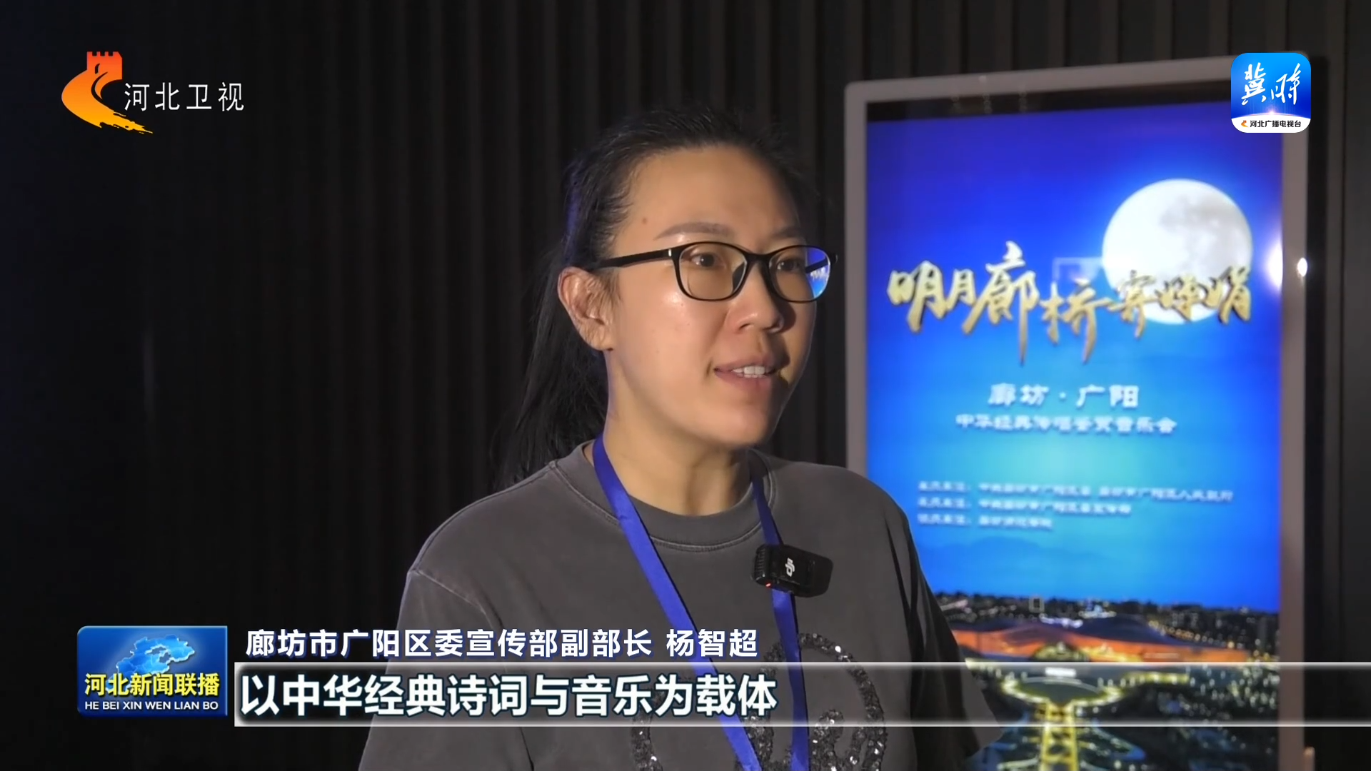在廊坊市广阳区,"明月廊桥寄婵娟"中华经典传唱鉴赏音乐会以月光为引,以传唱千古的经典古诗词为脉络,通过"月出东隅 天涯同望""月照廊桥 故园梦长""月满人间 万家共祥"三个篇章,融合经典歌舞、器乐合奏、诗词吟唱等多种艺术形式,让观众感受中华经典文化的魅力。