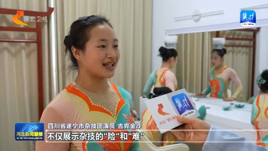 这次我们盛典演出最大特点是把我们在吴桥回家过后的20届艺术节的辉煌成果展示。这边我们也做了一个开场秀,200多演员跳同样一个舞蹈,那种国际范儿,大团结、大派对。结束时候,我们突然像变魔术一样,把我们"这么近,那么美,周末到河北"那个旗子就拉出来,总体来讲是展示我们"世界杂技在中国,中国杂技在河北"。