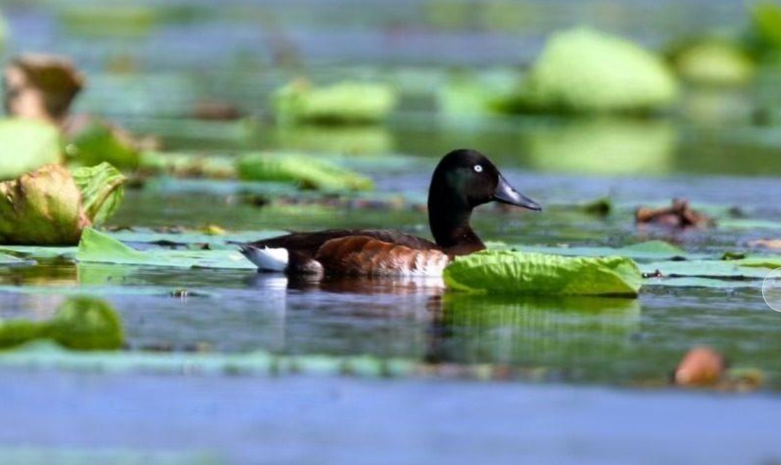 一只青头潜鸭在白洋淀悠闲游弋。