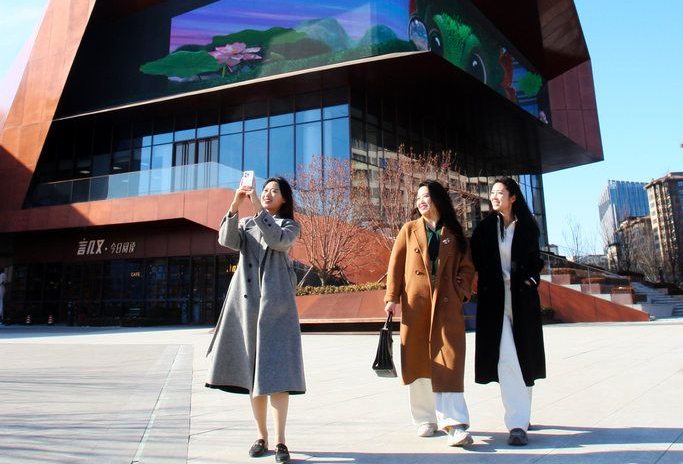 近日,三名来自不同城市的年轻教师在雄安新区容东片区街头赏景看春(图片来源:河北日报)