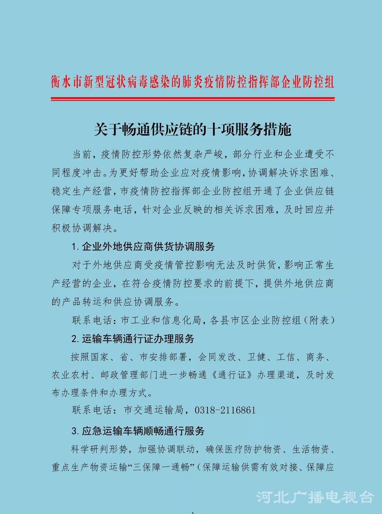 冀时客户端报道(河北台 王美中 熊瑛 李宝伟)当前,疫情防控形势依然复杂严峻,部分行业和企业遭受不同程度冲击。为更好帮助企业应对疫情影响,协调解决诉求困难、稳定生产经营,衡水市疫情防控指挥部企业防控组开通了企业供应链保障专项服务电话,针对企业反映的相关诉求困难,及时回应并积极协调解决。