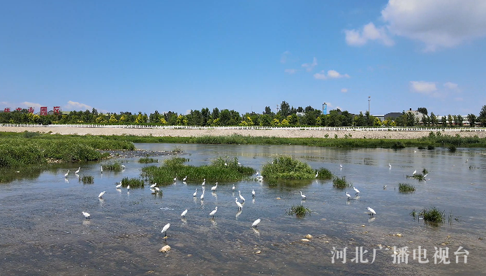 槐河湿地潺潺流水中成群的白鹭在水中嬉戏。它们在溪岸边漫步,在溪水中觅食,在浅浅的溪水中飞来飞去。白鹭,给这清蓝蓝的小溪,带来新的生命。